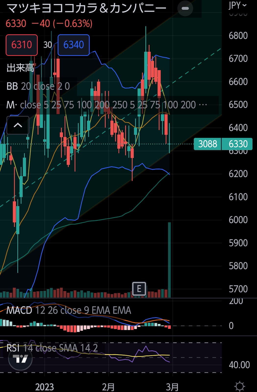 大引け価格の4705円がとりあえずのレジサポラインか。